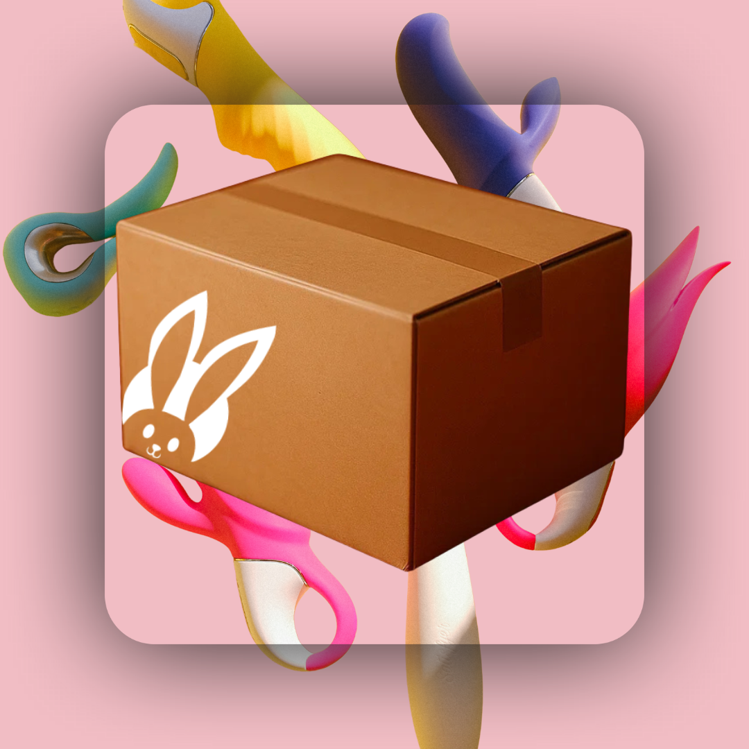 Caja con 3 juguetes sorpresa, que pueden ser plugs, vibradores, lubricantes y accesorios coquetos (como cola de conejo o crema de feromonas).